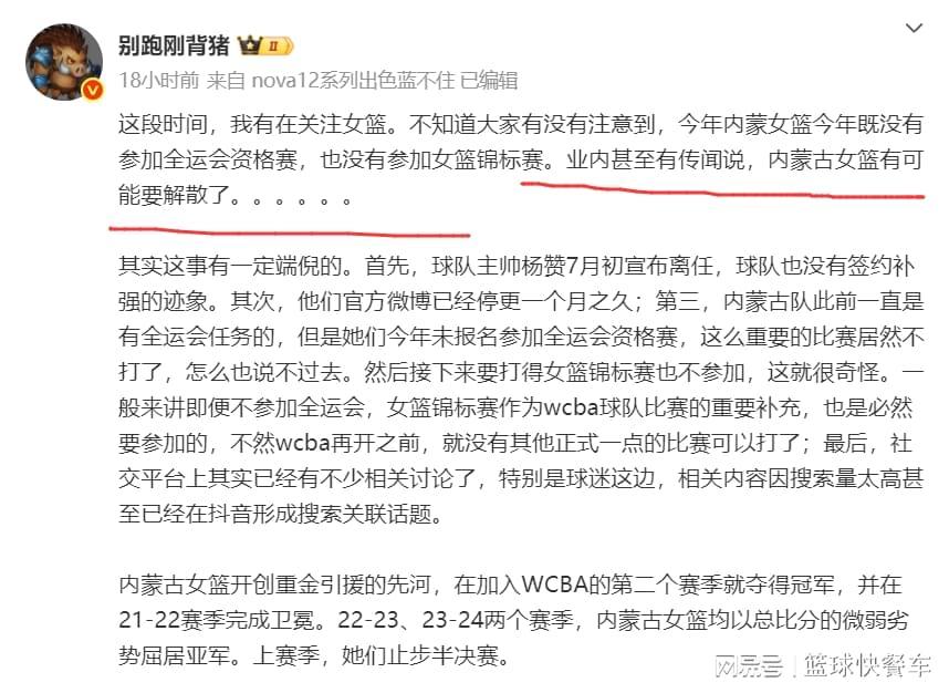 另外值得一提的是,内蒙古目前还拥有张茹、潘臻琦、李缘、孙梦然以及王丽丽5大国字号球员,单从实力上来看,内蒙古的纸面实力还是非常强的,他们还是总冠军热门球队之一。不过,一旦内蒙古就地解散的话,这些国字号球员可能会面临无球可打的尴尬境地。而且,相比于这些国手,内蒙古其他年轻球员以及替补球队,他们的处境就更加无奈了,下赛季能否继续征战WCBA,还真是一大问题。