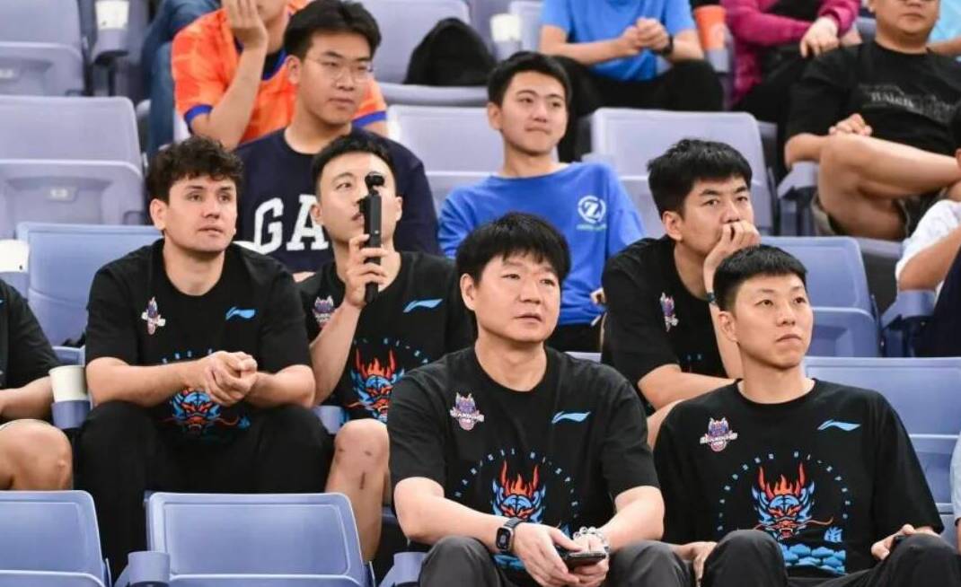 闪电体育8月24日讯今晚,山东泰山队主场迎战青岛西海岸。山东高速男篮俱乐部董事长胡克生,总教练纪民尚,主帅邱彪和助理教练李敬宇领衔一众教练组现身济南奥体中心观看足球比赛。