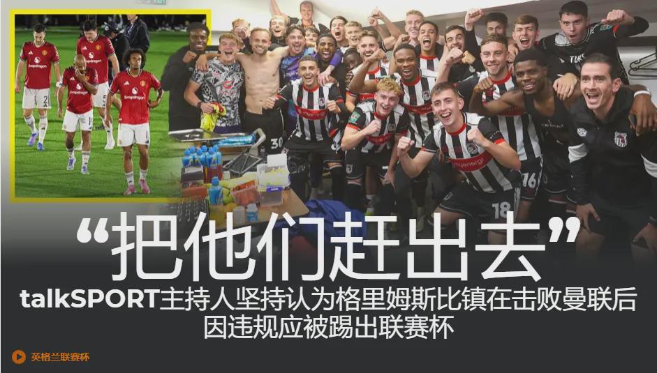 英国媒体talkSPORT主持人安迪·戈尔茨坦呼吁将格林斯比逐出联赛杯,因为他们在击败曼联的比赛中使用了不符合资格的球员。在《Drive》节目中,他对达伦·本特表示:“规则的存在是有原因的。无论是晚了59秒还是59分钟,都无关紧要。截止日期就是截止日期。奥多踢了19分钟,他本不该出现在球场上,因为球队没有按时为他注册。这就像球员越位只越位了一个脚趾头,那也是越位。”