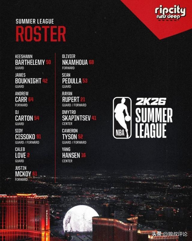 北京时间7月5日,开拓者官方公布了夏季联赛大名单,中国球员杨瀚森领衔,具体如下: