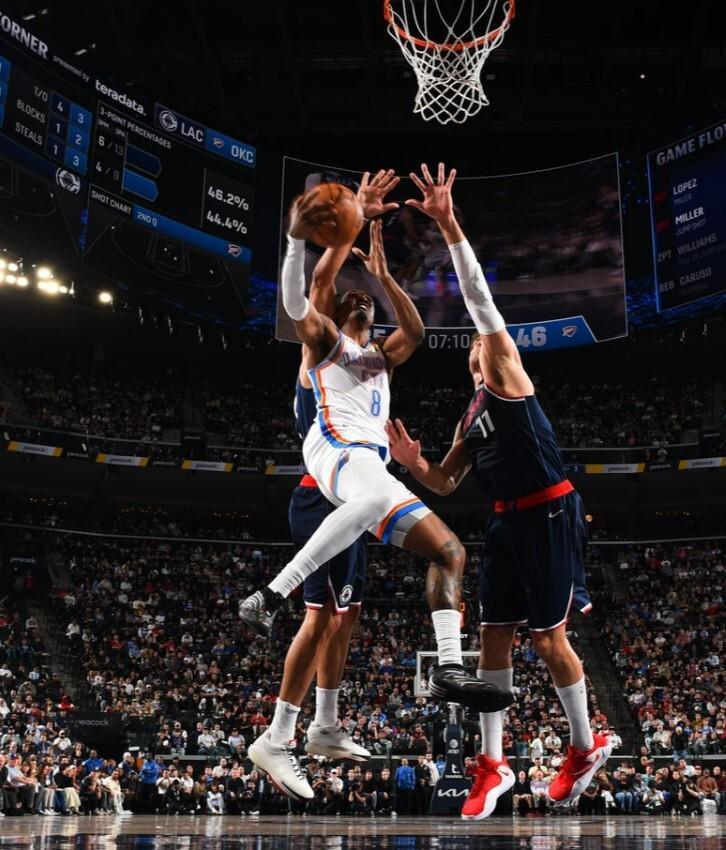 4月9日,NBA常规赛继续进行。洛杉矶快船队坐镇主场,迎来了俄克拉荷马城雷霆队的挑战。本场比赛雷霆从首节开始就一路领先,最终他们在客场以128-110轻取快船队,迎来一波7连胜。在本场战胜快船队之后,雷霆正式锁定了本赛季联盟第一的位置。